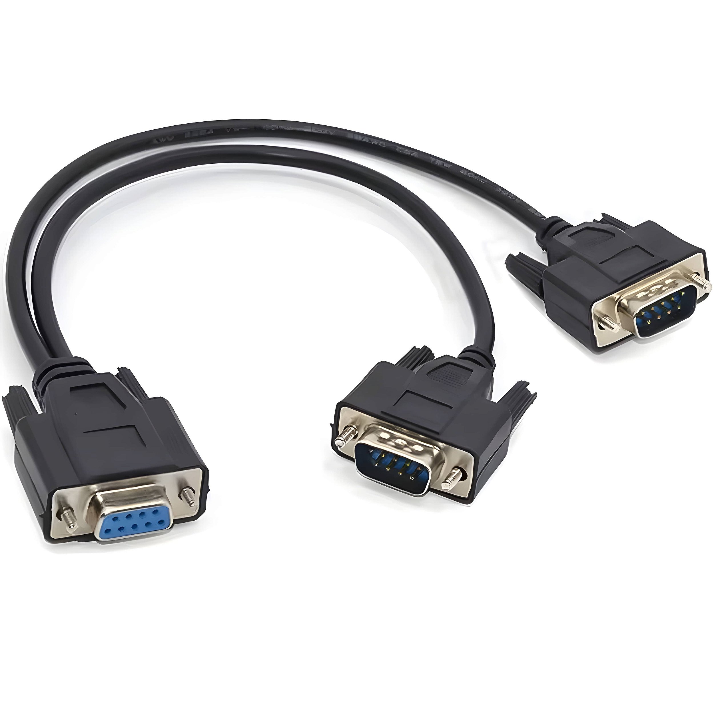 - Conectividade Versátil: O cabo possui dois conectores DB9 macho e um conector DB9 fêmea, facilitando a conexão de equipamentos que precisam de uma interface serial padrão RS232. Ideal para ligar dispositivos que requerem um ponto de conexão intermediário.