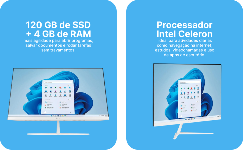 O Computador All in One Ultra B830 oferece praticidade, design moderno e excelente desempenho para o dia a dia. Equipado com o processador Intel Celeron N4020, 4 GB de memória RAM e SSD de 120 GB, ele garante inicialização rápida e fluidez nas tarefas diárias, como navegar na internet, assistir vídeos, participar de videochamadas e utilizar programas de escritório. Tudo isso com o sistema Windows 11 Home, que proporciona uma experiência moderna, segura e intuitiva.