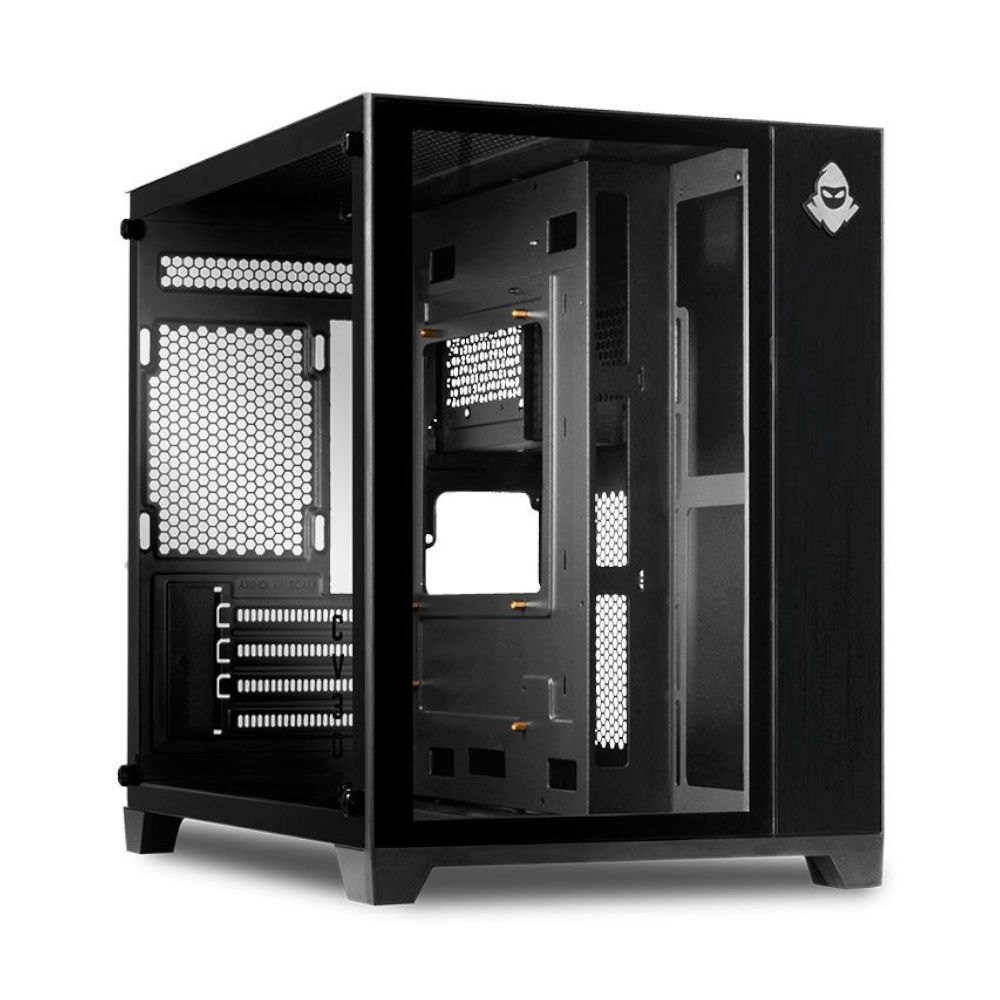 O Gabinete Mancer CV300 aposta em um estilo moderno e imponente, com lateral e painel frontal em vidro temperado de 4 mm, transformando o interior do seu PC em uma vitrine. O acabamento preto fosco combina com diversos estilos de setup e permite que os componentes internos — iluminação, cabos e ventiladores — fiquem à mostra com harmonia.
