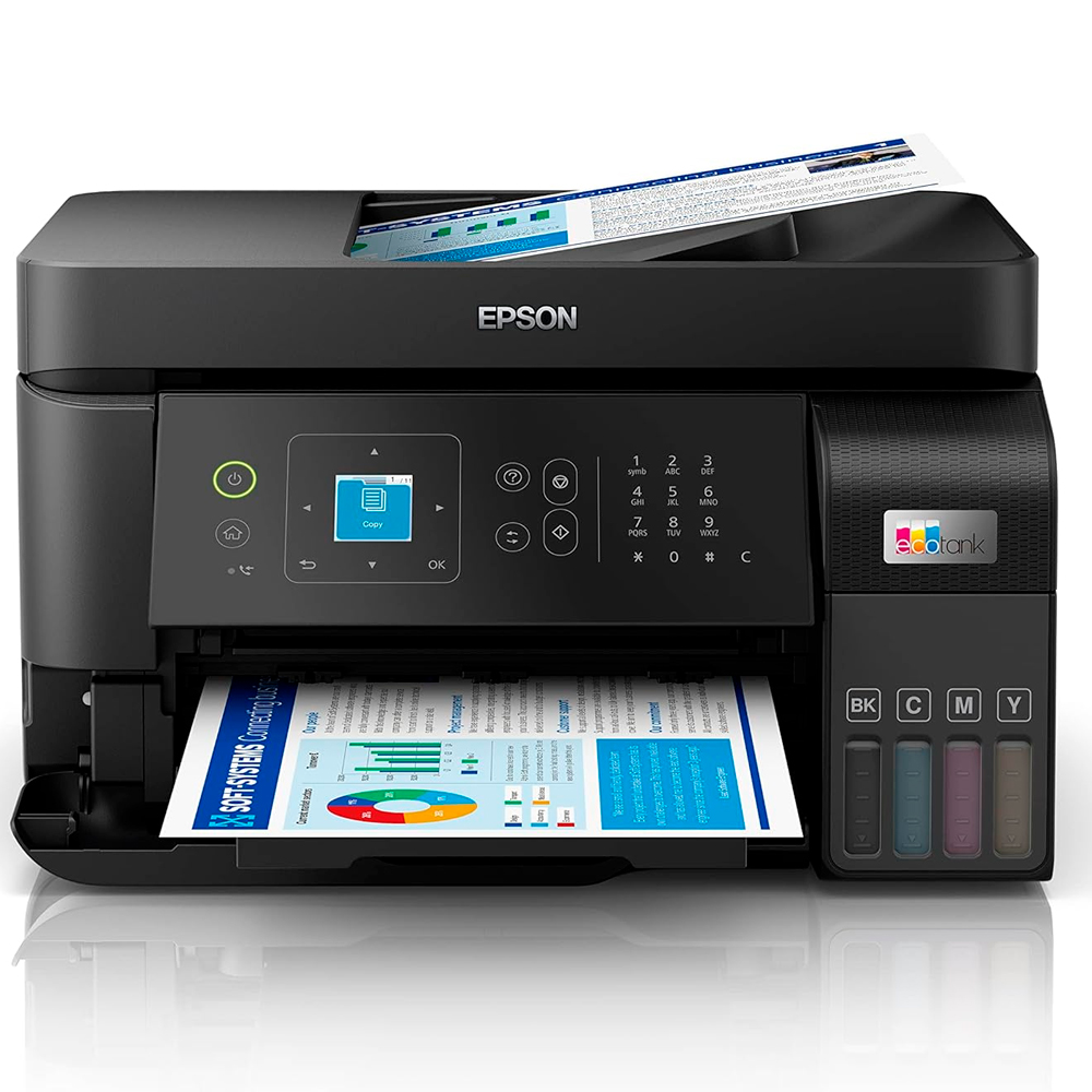 A nova EcoTank L5590 é um equipamento multifuncional poderoso 4 em 1 para pequenos escritórios e profissionais que buscam velocidade de impressão, resolução e confiabilidade de nível empresarial com funções direcionadas para aumentar sua produtividade.