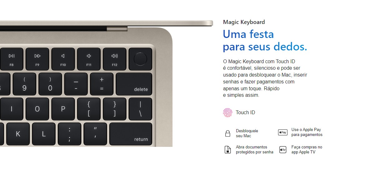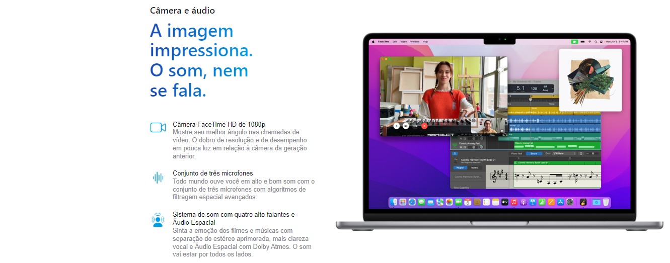 A sua tela LED de 13.6" e 2560x1664 px de resolução lhe dará cores mais vivas e definidas. Seus filmes e séries favoritas ganharão vida, com maior qualidade e definição em cada detalhe.