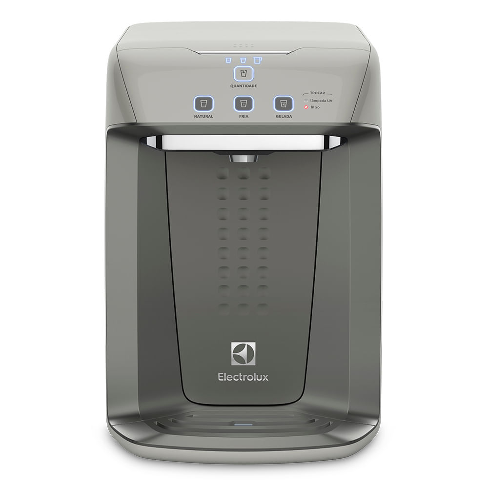 Purificador de Água Electrolux PA31G Bivolt Cinza: Água Pura em 3 Temperaturas com UV 99% Germes e Filtro Acqua Clean O Purificador de Água Electrolux PA31G em Cinza é o aliado essencial para famílias que buscam água limpa e refrescante em casa ou no escritório, oferecendo 3 temperaturas (gelada, fria e natural) com fluxo contínuo e purificação avançada que elimina 99% dos germes via UV. Com filtro Acqua Clean de fácil troca e painel Blue Touch intuitivo, ele filtra até 0,8L de água gelada por vez a 10°C, ideal para hidratação diária sem garrafas plásticas. Bivolt automático e consumo de apenas 0,075kWh garantem economia, enquanto o design compacto com pés anti-derrapante e suportes para parede se adapta a cozinhas modernas, tornando-o indispensável para quem prioriza saúde, praticidade e sustentabilidade em um purificador que une tecnologia UF + Carbon Block + UV para água cristalina e segura.