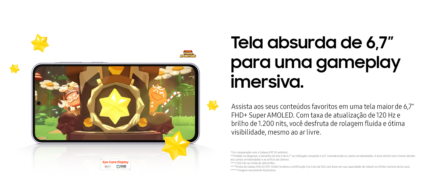 Com 256 GB de armazenamento interno, o A36 entrega espaço suficiente para fotos, vídeos, apps e documentos.